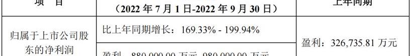 10月18日消息,近日,天齊鋰業發布2022年前三季度業績預告,預計今年前三季度歸屬于上市公司股東的凈利潤為152至169億元,同比增長276896至3089