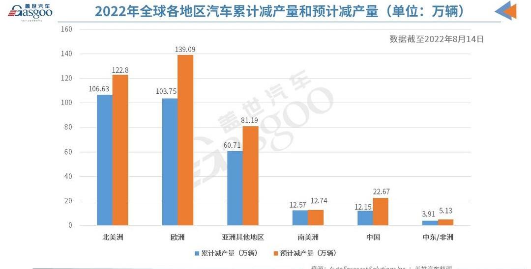 在《芯片與技術法案》的推動下,多家公司宣布對美國半導體制造業追加近500億美元的投資,使拜登上任以來的企業投資總額達到近1500億美元。其中,美光宣布將投資400億美元用于內存芯片制造,這將在建筑和制造業創造多達4萬個新工作崗位。高通宣布,計劃在未來五年內將美國的半導體產量提高50%。據國外媒體報道,根據AutoForecast Solutions(以下簡稱AFS)的最新數據,截至8月14日,由于芯片短缺,今年全球汽車市場累計減產約299.73萬輛。AFS預測,到今年年底,全球汽車市場的累計減少量將攀升至383.62萬輛。