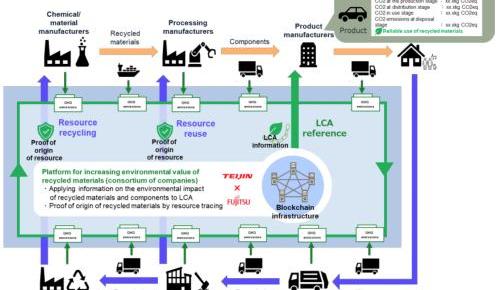 7月12日,帝人和富士通宣布,他們將共同開發一個基于區塊鏈的業務平臺,以提高制造商回收材料的環境價值。基于這一合作,帝人將使用其生命周期評估(LCA)計算方法來衡量整個價值鏈中制造過程的環境影響,富士通將提供區塊鏈技術來收集和跟蹤環境相關影響(包括溫室氣體排放)的原始數據,以實現可靠和透明的可追溯性,從而促進環境意識設計。