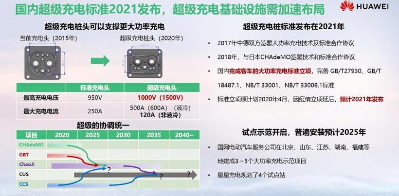 基于這一目標,華為在汽車領域布局了智能電動車、智能駕駛、智能網聯、智能駕駛艙、智能車云等“4+1”服務,推動中國電動汽車產業化快速發展。1.提升充電體驗是重中之重,超級快充是大勢所趨。盡管面臨疫情,今年中國新能源汽車市場仍在改善,銷量約為130萬輛,滲透率約為4.9%至5%。與此同時,我們還有一個好消息:在歐洲綠色新政的影響下,歐洲電動車銷量已經突破100萬輛。這表明中國和歐洲這兩個重要的汽車市場加快了電動汽車的商業化進程,未來將呈現中歐雙擎持續快速發展的趨勢。近年來,我國國家政策不斷調整,補貼開始從車輛轉向車輛,而不是支持充電基礎設施。2020年初,國家將充電樁列入新基建七大產業之一。從今年的狀態來看,新基礎設施的發展還沒有完全發力,預計從明年開始對電動車行業的推動會非常明顯。