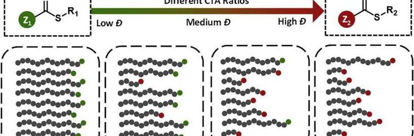 (來源:蘇黎世聯邦理工學院)很難想象日常生活中沒有合成高分子材料,衣服、汽車零部件、電腦或包裝產品都是高分子材料。而且自然界有很多聚合物,比如DNA或者蛋白質。聚合物建立在一個通用的架構上:也就是說,它們由稱為單體的基本構件組成。聚合物合成需要將單體連接在一起形成長鏈。想象一下,把玻璃珠放在繩子上,形成不同長度(和重量)的鏈條。生產聚合物的一個重要過程是自由基聚合(FRP)。玻璃鋼用于化學工業,每年生產2億噸各種類型的聚合物,如聚丙烯酸、聚氯乙烯(PVC)和聚苯乙烯。雖然這種制作方法有很多優點,但也有其局限性。玻璃鋼會產生不可控的不同長度的聚合物的混合物,換句話說就是高度分散。分散性是衡量材料中高分子鏈長均勻性的一個指標,材料的性能很大程度上取決于分散性。日常生活中使用的聚合物中,需要低分散和高分散的聚合物。事實上,高分散性甚至是許多高科技應用中使用的聚合物的優勢,如制藥或3D打印。然而,如果化學家想要生產具有特殊性能的聚合物材料,他們首先必須能夠根據需要調節分散,這樣才能生產出各種類型的聚合物材料,這些材料要么含有均勻的聚合物物種,即低分散或高分散,而且可以分散不同長度的聚合物。然而,直到現在,幾乎不可能實現。在材料系高分子材料教授Athina Anastasaki的帶領下,一組研究人員開發了一種控制自由基聚合的方法,使研究人員可以系統、完整地控制高分子材料的分散性。過去,為了在一定程度上控制自由基聚合過程,化學家會使用單一催化劑。盡管聚合物鏈的長度變得均勻,但總的分散性不能如預期的那樣得到控制。