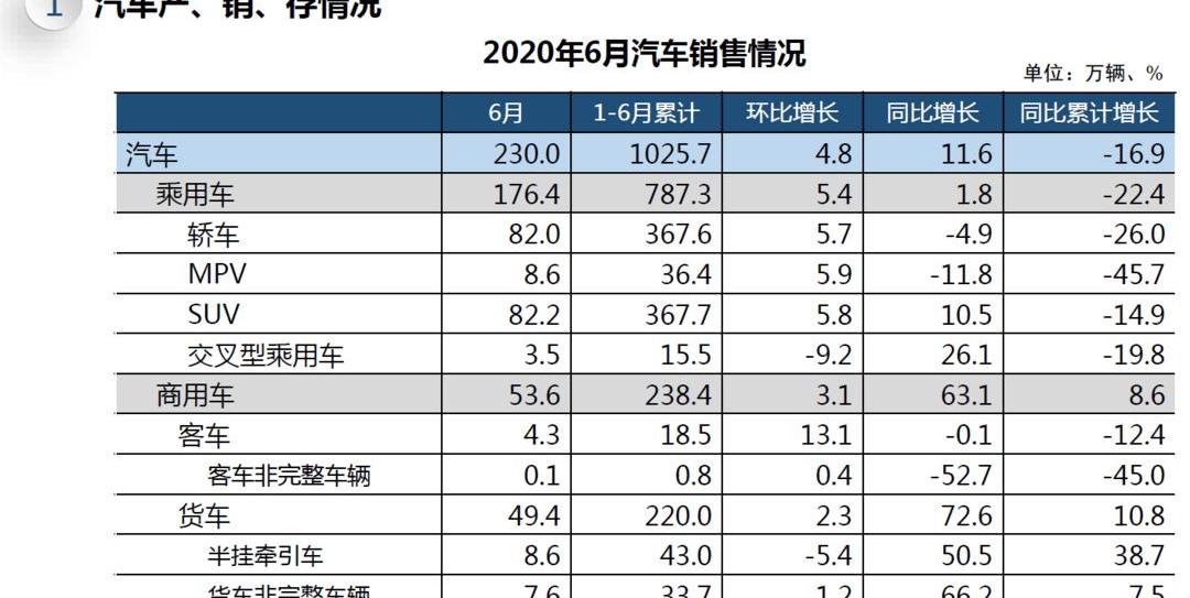 7月10日,中汽協召開網上月度信息發布會,發布2020年6月汽車行業產銷情況。2020年6月汽車產銷繼續回暖,當月產銷量保持環比、同比增長,其中商用車同比增速較為明顯。6月份,汽車產銷分別完成232.5萬輛和230萬輛,環比增長6.3%和4.8%,同比增長22.5%和11.6%。