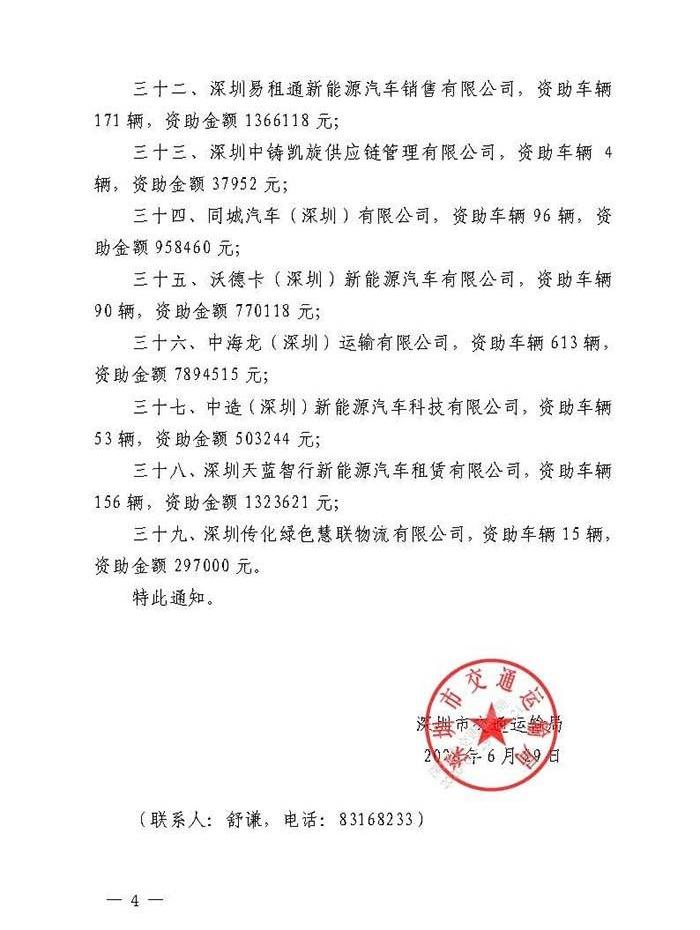 3近日,深圳市交通運輸局發布2019年純電動物流配送車運營資助結果公告。通知顯示,深圳將對39家企業的6557輛純電動物流車進行補貼,總金額77252601元。