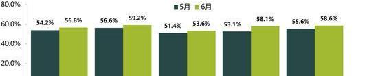 北方地區疫情反復,促銷費政策和車展活動難以開展,庫存壓力持續。從地區指數來看,調查顯示,6月份全國總指數為56.8%,北方指數為59.2%。