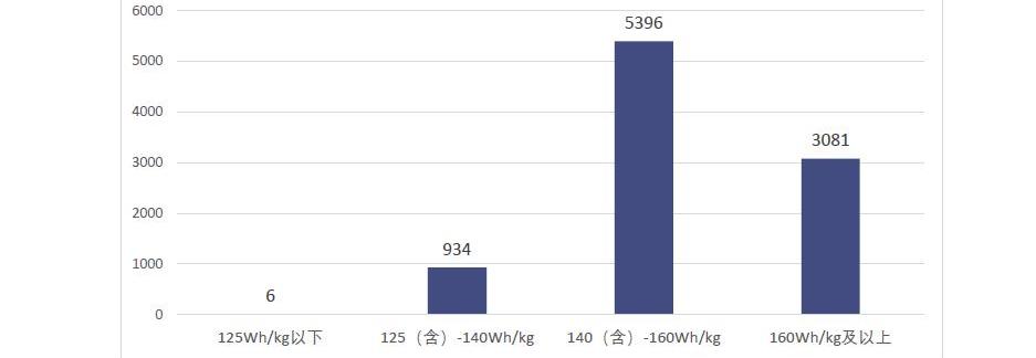 根據純電動乘用車電池系統能量密度分布,2020年2月,我國純電動乘用車能量密度最高,在140(含)-160Wh/kg區間,2月共產量0.5萬輛,占純電動乘用車的57.3%。125(含)-140Wh/kg和160(含)以上車型產量分別占純電動汽車總產量的9.9%和32.7%,125 Wh/kg以下車型占比降至0.1%。