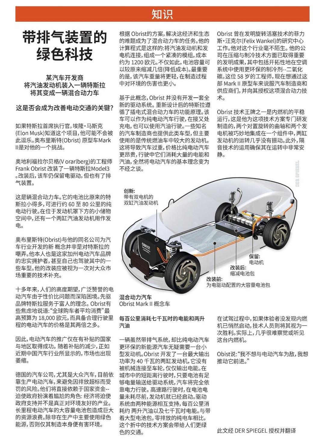 被稱為德國最重要、歐洲發行量最大的新聞周刊《明鏡周刊》(Der Spiegel)近日對Obrist Powertrain進行了采訪。讓我們看看平均每周發行量近110萬份的德國主流媒體是如何評價當前整個歐洲汽車行業和這家奧地利工程設計公司的。