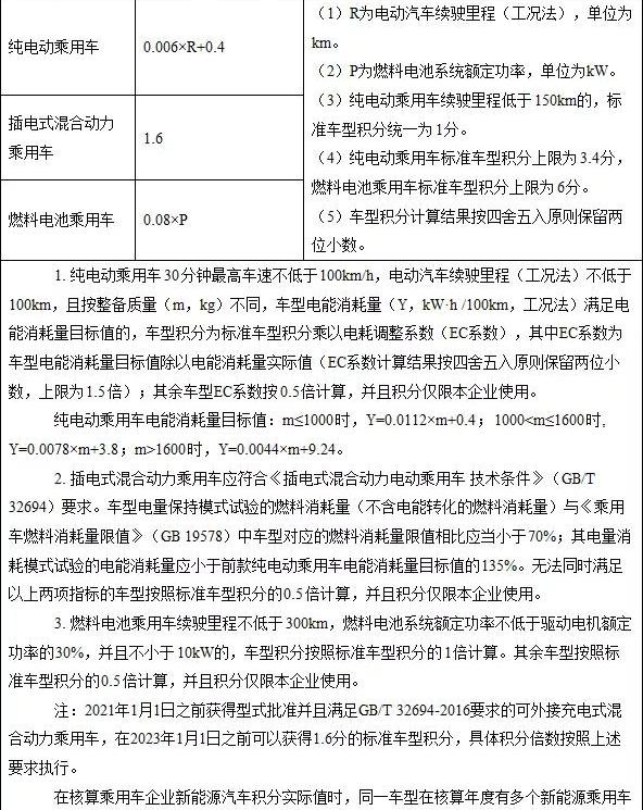 此外,對比《乘用車企業平均燃料消耗量與新能源汽車積分并行管理辦法》,9月11日的征求意見稿還將《辦法》第二十三條修改為:“具有下列關系之一的乘用車企業,屬于《辦法》第二十二條第一款規定的關聯企業: (一)國內乘用車生產企業與其他直接或者間接持股合計超過25%的國內乘用車生產企業;和(2)由第三方直接或間接擁有且總持股超過25%的國內乘用車制造商;(3)境外乘用車制造商授權的進口乘用車供應商,以及直接或間接持股(或持股)合計達到25%及以上的國內乘用車制造商。其中,括號中的“或被持有”代表了這一新變化。9月11日的《征求意見稿》最后稱,“本決定自2021年1月1日起施行。《乘用車企業平均燃料消耗量與新能源汽車積分并行管理辦法》(工業和信息化部、財政部、商務部、海關總署市場監管總局令2017年第44號)根據本決定修訂,重新公布。7月9日版征求意見稿的主要修改包括修改傳統能源乘用車適用范圍更新2021-2023年新能源汽車積分比例要求和修改新能源汽車車型積分計算方法。《積分辦法》調整了傳統能源乘用車油耗指導措施和新能源汽車積分彈性措施,并延續了對小規模企業適度放寬的考核優惠。與上年相比,2018年乘用車企業(含進口)油耗正分下降,油耗負分和新能源汽車正分上升。2018年新能源汽車正積分的增速和幅度都比較大,從2017年的179.32萬分大幅增長到403.53萬分。附:關于修改《乘用車企業平均燃料消耗量與新能源汽車積分并行管理辦法》(征求意見稿)的決定為適應我國節能和新能源汽車產業發展需要, 工業和信息化部等有關部門決定對《乘用車企業平均燃料消耗量與新能源汽車積分并行管理辦法》作如下修改:第四條第三款修改為:“本辦法所稱傳統能源乘用車,是指可以燃用汽油、柴油、氣體燃料、醇醚燃料運行的乘用車(含非插電式混合動力電動乘用車),新能源乘用車除外。 “增加一款作為第四條第四款:“本辦法所稱低油耗乘用車,是指綜合油耗不超過“乘用車燃料消耗量評價方法和指標中相應車型燃料消耗量目標值與企業會計年度平均燃料消耗量要求(計算結果按四舍五入原則四舍五入至小數點后兩位)的乘積”的傳統能源乘用車。”2、第十條增加一款作為第二款:“企業傳統能源乘用車平均燃料消耗量實際值是指未參與新能源汽車核算的企業平均燃料消耗量實際值。”將第十二條第一款修改為:“對年生產量在2000輛以下并自主生產、研發、經營的國內乘用車生產企業,以及進口量在2000輛以下的境外乘用車生產企業授權的進口乘用車供應商, 放寬對其企業平均燃料消耗量積分的達標要求:2021年至2023年企業平均燃料消耗量比上年下降4%以上的,達標值為《乘用車燃料消耗量評價方法和指標》中規定的企業平均燃料消耗量要求放寬60%;價格下降2%以上4%以下的,標準值放寬30%。“2024年及以后年度的會計要求將由工業和信息化部另行公布。”4、第十六條增加一款作為第二款:“乘用車企業計算新能源汽車達標值時,低油耗乘用車的產量或進口量按其數量的0.5倍計算。”第十七條第二款修改為:“2021年、2022年、2023年,新能源汽車信貸比例要求分別為14%、16%、18%。2024年及以后年度的新能源汽車信貸比例要求由工信部另行公布。”第二十二條第二款修改為:“乘用車企業產生的新能源汽車正積分,可以按照本辦法自由交易。2019年及以后年度產生的新能源汽車正積分,按照以下規則結轉使用,轉讓有效期不超過三年: (一)2019年產生的新能源汽車正積分,可等額結轉2020年使用;(2)新能源汽車2020年的正積分,每結轉一次按50%的比例結轉。(三)傳統能源乘用車實際平均燃料消耗量與2021年及以后年度企業平均燃料消耗量標準值之比不高于123%的,允許當年產生的新能源汽車正積分向后結轉,每次結轉比例為50%。”僅生產或進口新能源汽車的企業產生的新能源汽車正積分,按50%的比例結轉。“七、第二十三條修改為:“有下列關系之一的乘用車企業,屬于本辦法第二十二條第一款規定的關聯企業: (一)國內乘用車生產企業和直接或間接持股合計超過25%的其他國內乘用車生產企業;(2)直接或間接持股超過25%的第三方國內乘用車制造商;(3)境外乘用車制造商授權的進口乘用車供應商,以及直接或間接持股(或持股)合計達到25%及以上的國內乘用車制造商。“乘用車企業在確定關聯關系時,應當向工業和信息化部提交相關材料。”八、第三條、第二十一條、第三十一條、第三十二條中的“國家質量監督檢驗檢疫總局”修改為“市場監督管理總局”。9、將附件2“新能源乘用車車型積分計算方法”修改為:新能源乘用車車型積分計算方法