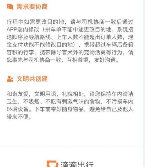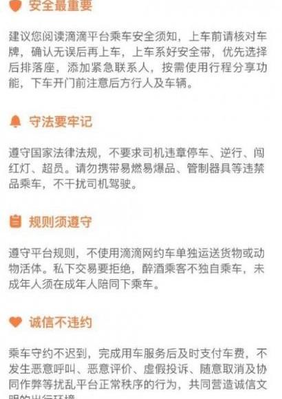 2 9月11日,滴滴出行平臺規則官方微博正式發布《滴滴網約車文明乘車指南》(以下簡稱《指南》),該指南是在此前公布的征求意見稿基礎上,結合公眾意見最終修訂的版本,適用于滴滴出行平臺快車、高級順風車、專車、豪車等網約車服務。從8月15日到8月21日,該指南在發布的7天內共收到9576條評論,其中90.2%的受訪者表示支持指南的發布,“希望乘客不要遲到”、“提高司機服務意識”是高頻反饋內容。有網友表示:“到達訂單起點后,往往要等乘客。有的乘客不考慮車在等的時候浪費了多少燃油,排放了多少廢汽。而且很多地方停車會造成交通擁堵。建議司機到達起點后等待2分鐘,但不負責取消。"也有網友說:"我上快車后會打招呼,但有些快車司機不理我。應該加強滴滴司機的服務水平和意識。“結合網友的建議,對指南進行了修改。乘客和司機可在滴滴APP規則中心、滴滴平臺微博規則、滴滴出行官方微博、官方微信查詢具體內容。滴滴表示,根據國務院辦公廳發布的《關于促進平臺經濟規范健康發展的指導意見》,未來平臺還將公示司機評價乘客機制,完善信用體系。在不久的將來,該平臺將升級評估功能。除了乘客評價司機,還將完善司機評價乘客的功能,盡快發布雙向評價機制,繼續推進精神文明建設,營造文明出行生態。