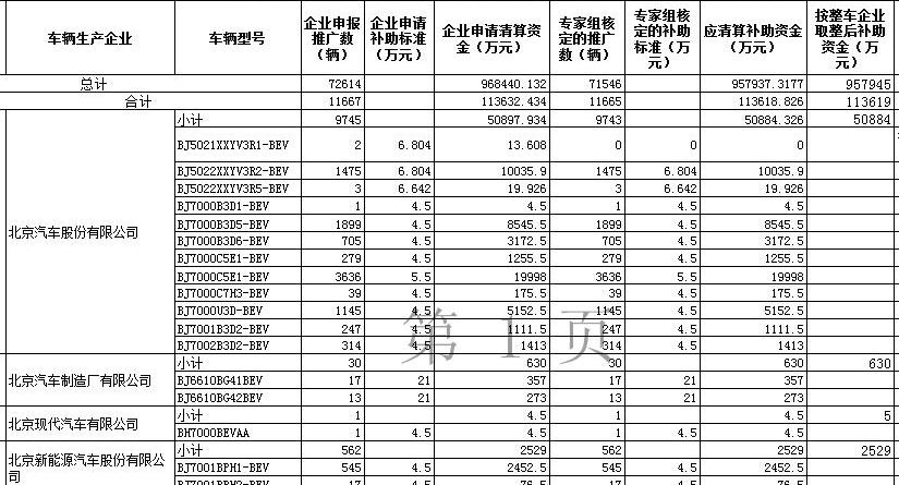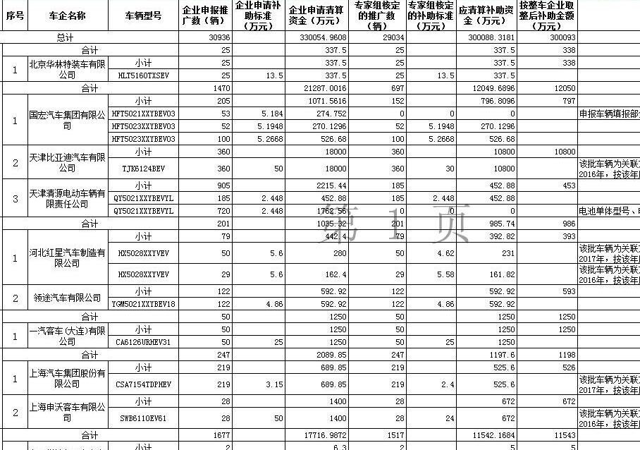 3月19日,工信部公布了2016年及往年新能源汽車推廣應用補貼初審情況,涉及補貼金額126億元。2015年及前幾年,企業申請新能源汽車促銷30936次,清算資金3300549608萬元。專家組批準了29034項新能源汽車促銷活動,待清算申請的補貼總額為3000883110萬元。2016年,企業共申請新能源汽車促銷72614次,清算資金968440132萬元。專家組批準71546項新能源汽車促銷活動,申請清算補貼資金總額95793731.77萬元。