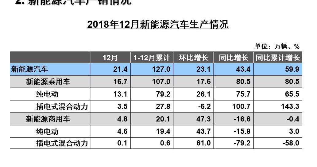 對于2019年新能源汽車的市場趨勢,中汽協秘書長助理徐海東表示,近年來新能源汽車發展迅速,逐漸成為全國關注的焦點。未來幾年,新能源汽車在中國的市場份額將繼續提高,成為新車銷售的另一個驅動點。1月14日,中國汽車協會發布了2018年12月及2018年全年汽車產銷數據。正如此前預測的那樣,2018年中國汽車市場的產銷量均低于預期,分別為2780.9萬輛和2808.1萬輛。盡管連續十年蟬聯全球冠軍,但自1990年以來的持續增長趨勢已被打破,同比有所下降。
