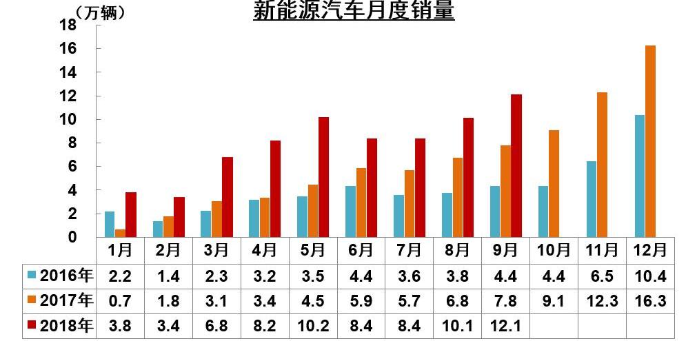 1-9月,新能源汽車累計產銷分別為73.5萬輛和72.1萬輛,分別比去年增長73%和81.1%。其中,純電動汽車產銷分別為55.5萬輛和54.1萬輛,分別增長58.9%和66.2%。混合動力汽車產銷分別為18萬輛和18.1萬輛,分別比去年同期增長138%和146.9%。