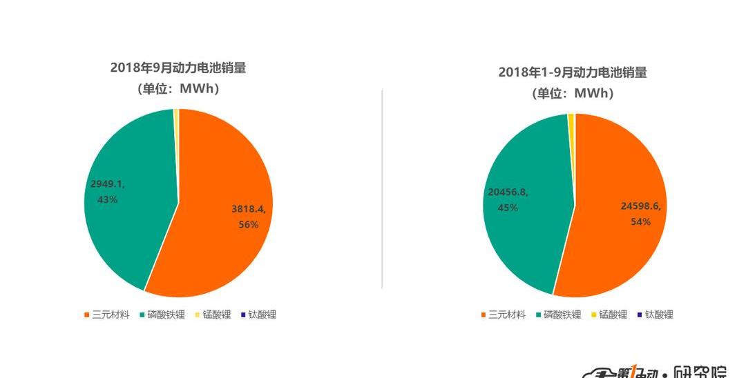 從銷量來看,9月,中國動力電池銷量共計6.8GWh,其中三元電池銷量為3.8GWh,占總銷量的56.0%,高于總銷量的一半;磷酸鐵鋰電池銷量為2.9GWh,占總銷量的43.2%。1-9月,中國動力電池累計銷量達到45.6GWh,其中三元電池累計銷量達24.6GWh,占總銷量的53.9%;磷酸鐵鋰電池累計銷量為20.5GWh,占總產量的44.8%。