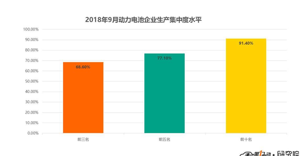 從動力電池企業的生產集中度水平來看,9月份,中國動力電池行業前三大企業的總產量為4.8GWh,占68.6%,前五大企業的生產總量為5.4GWh,約占77.1%,前十大企業的產量為6.4GWh,共占91.4%。1-9月,中國動力電池行業前三大企業的總產量為29.6GWh,占64.3%;前五名企業的裝機容量為35.0GWh,占比76.1%;前十名企業的裝機容量為41.0GWh,占比89.1%。