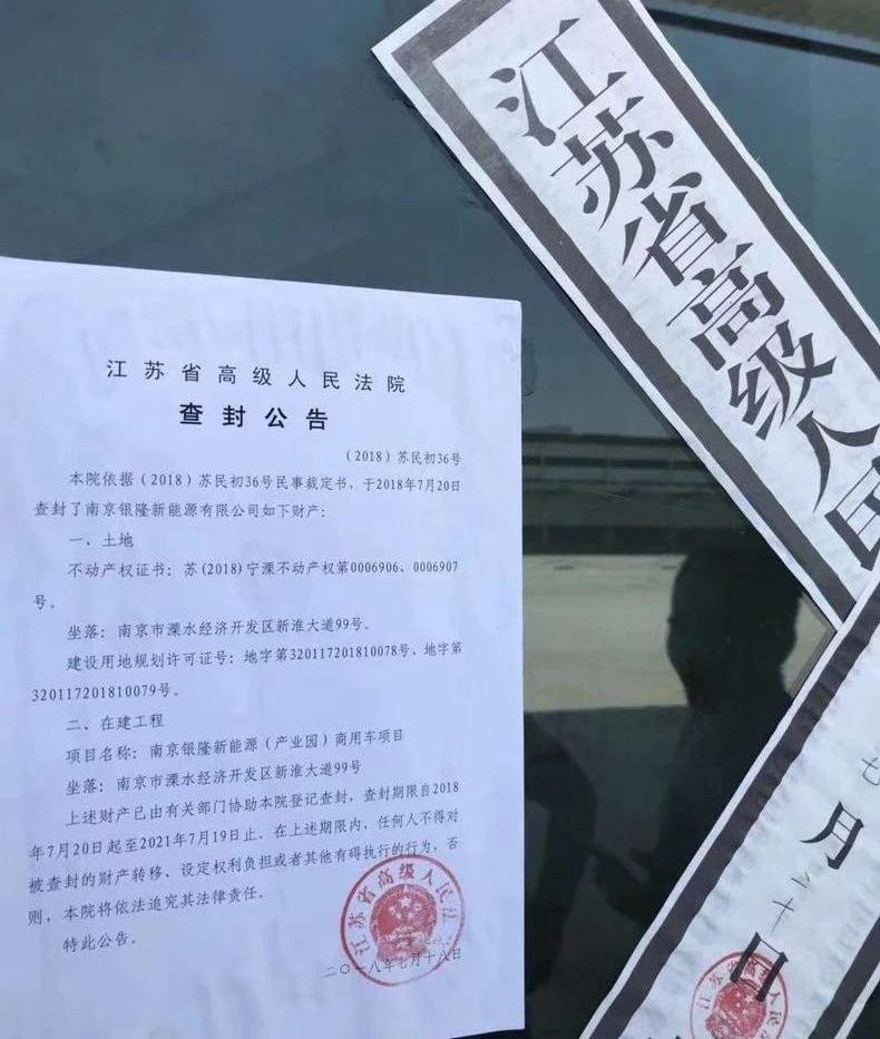 7月20日晚,一張照片在網絡上廣為流傳,在新能源汽車領域引起震動。照片為查封公告,內容大致如下:2018年7月18日,江蘇省高級人民法院查封了位于南京市溧水經濟開發區新懷大道99號的南京銀隆新能源(工業園)商用車項目房地產。扣押日期為2018年7月20日至2021 7月19日。扣押的原因尚不清楚。