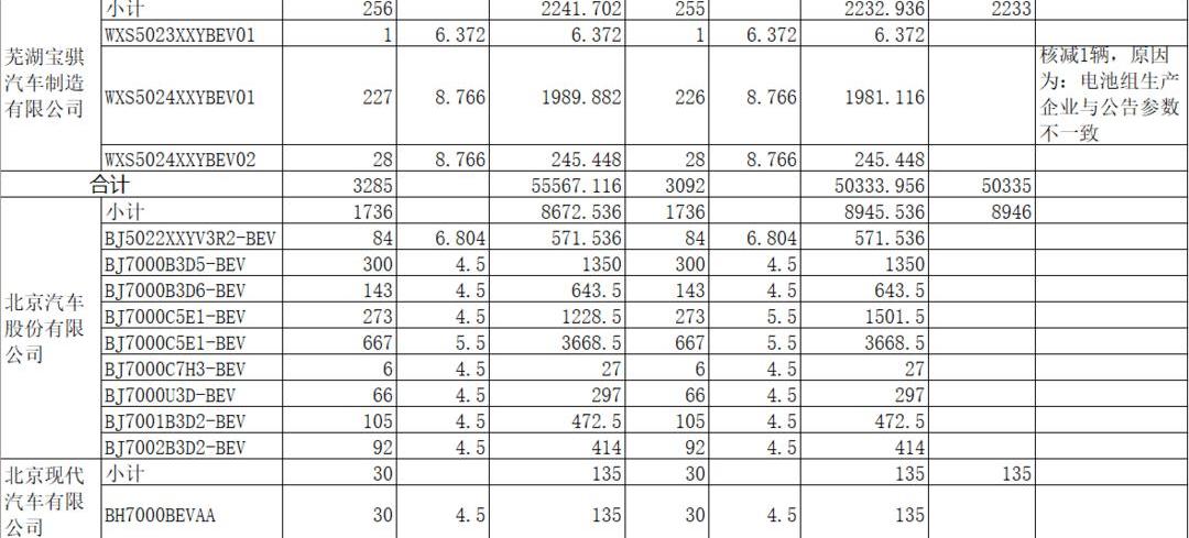 1 5月25日,工業和信息化部公布了《2017年及以前年度新能源汽車推廣應用補貼初審》。經審核,新能源汽車企業應在2016年和2017年清算約189.7億元補貼。2016年,申請晉升的新能源企業數量為51016家,企業上市資金為124.63億元,專家組批準的新能源公司數量為50208家,擬清算的補貼資金為123.33億元。減少的原因包括:電機型號與公布的參數不一致,行駛里程不足2萬公里;電池組制造商與公告參數不一致;該型號未進入推薦目錄;電池組的總功率和驅動電機的額定功率與公布的參數不一致;車輛Ehg大于0.7,不符合推廣應用補貼標準;電機型號與公布的參數不一致;驅動電機制造商與公布的參數不一致;車型的Egg值與推薦目錄的參數不一致,因此無法批準推廣應用的補貼金額;該批申報的車輛駕駛證登記日期不在2016年;電池組制造商與推薦的目錄參數不一致;