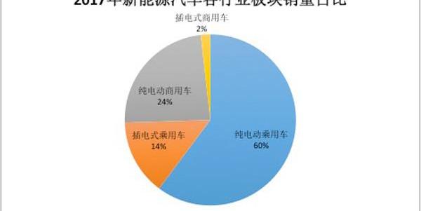 2017年,中國新能源汽車月產量(單位:輛)及同比和季度增長率從市場趨勢來看,新能源汽車基本呈現出先低后高的趨勢:年初產量低,年中開始增長,年末快速上升。2017年,中國新能源汽車市場也延續了這一趨勢。其中,4月和7月為平臺期,7月增長緩慢,甚至出現負增長。它在11月再次爆發,比上月增長了30%以上,比上月高達53.3%。行業發展不平衡中國新能源汽車市場作為一個新興行業,在市場高速增長的同時,仍然是一個不平衡的市場。首先,行業發展不均衡,乘用車市場發展迅速,但商用車市場發展乏力。2017年,新能源乘用車銷量占新能源汽車總銷量的74.4%,遠超2016年的62%,接近燃油車的市場份額。其中,純電動乘用車46.8萬輛,插電式混合動力乘用車11.1萬輛,比例超過4:1;