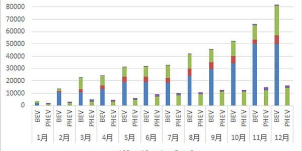 新能源商用車方面,受補貼大幅下降和3萬公里要求的影響,前10個月持續低迷,后兩個月受補貼將再次下降等因素影響,共售出10萬輛,占全年銷量的51%,這也反映了政策對新能源汽車市場,尤其是商用車市場的影響。