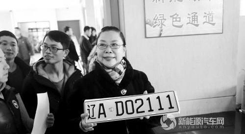 2017年12月25日上午11時許,王女士通過網“50選1”選號系統,取下了遼寧省沈陽市第一塊新能源汽車號牌。第一塊車牌的編號是“廖AD02111”。市民王女士也成為申城市第一位獲得新能源汽車號牌的車主。新能源汽車上牌首日,本市共上牌21輛新車,換牌19輛新能源汽車,其他城市上牌1輛;該區域共轉移登記車輛11輛,共計52輛。