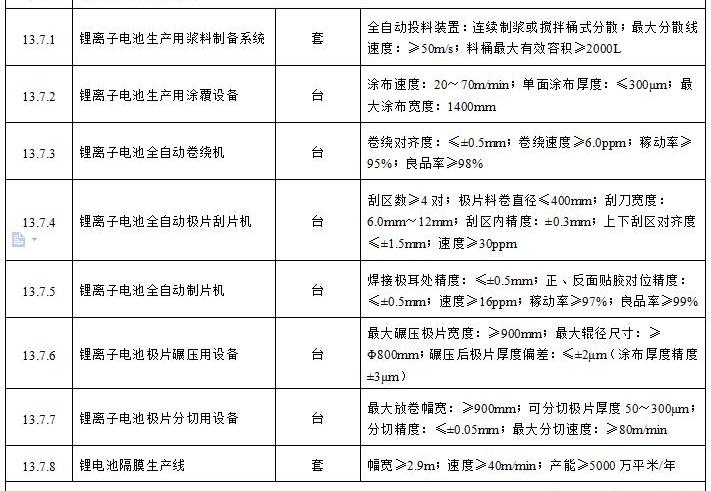 12月15日,工業和信息化部公布了《首(套)重大技術裝備推廣應用指導目錄》(2017年版),其中8套鋰離子電池生產裝備入選。