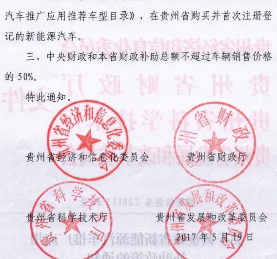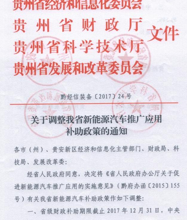 近日,貴州省發布《關于調整我省新能源汽車推廣應用補貼政策的通知》。通知指出,中央和全省財政補貼總額不得超過汽車銷售價格的50%。此前,貴州省經濟和信息化委員會發布的《貴州省新興產業“十三五”規劃》提到,2017年新能源汽車產業將實現總產值50億元,到2020年,新能源汽車工業將實現總產出120億元。關于調整我省各市(州)、貴安新區經濟和信息化主管部門、財政局、科技局、發展改革委新能源汽車推廣應用補貼政策的通知:經省人民政府同意,《省人民政府辦公廳關于促進新能源汽車推廣應用的實施意見》(黔府辦函〔2015〕155號)決定對我省新能源汽車補貼政策作出如下調整:1。省級財政補貼期限至2017年。二、省財政對列入工信部《新能源汽車推廣應用推薦車型目錄》、在貴州省購買并首次注冊的新能源汽車給予補貼。三、中央財政和全省財政補貼總額不超過汽車銷售價格的50%。此次,中央和省財政補貼總額將由汽車銷售價格的60%調整為50%。其他補貼繼續按照《省人民政府辦公廳關于促進新能源汽車推廣應用的實施意見》(黔府辦函〔2015〕155號)執行,即:,本省企業生產銷售、省外企業在我省推廣應用的新能源汽車產品,按照中央財政補貼標準,符合安全、動力、維修等要求。
