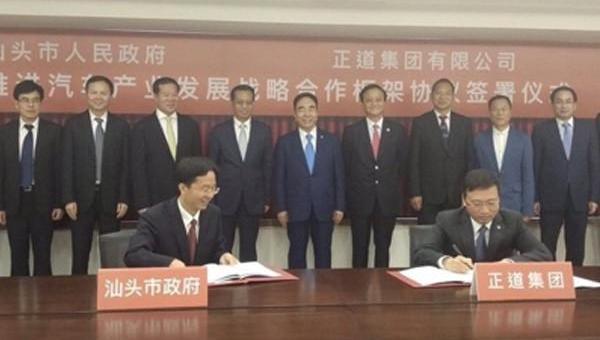 近日,汕頭市政府與正道集團共同推動汽車產業發展戰略合作框架協議簽署儀式在香港正道集團有限公司總部舉行。汕頭市委書記陳良賢率團赴香港簽署。汕頭將與正道集團合作,推動新能源汽車、汽車零部件及相關大數據產業落戶,共同打造產值超過5000億元的清潔能源汽車產業集群。