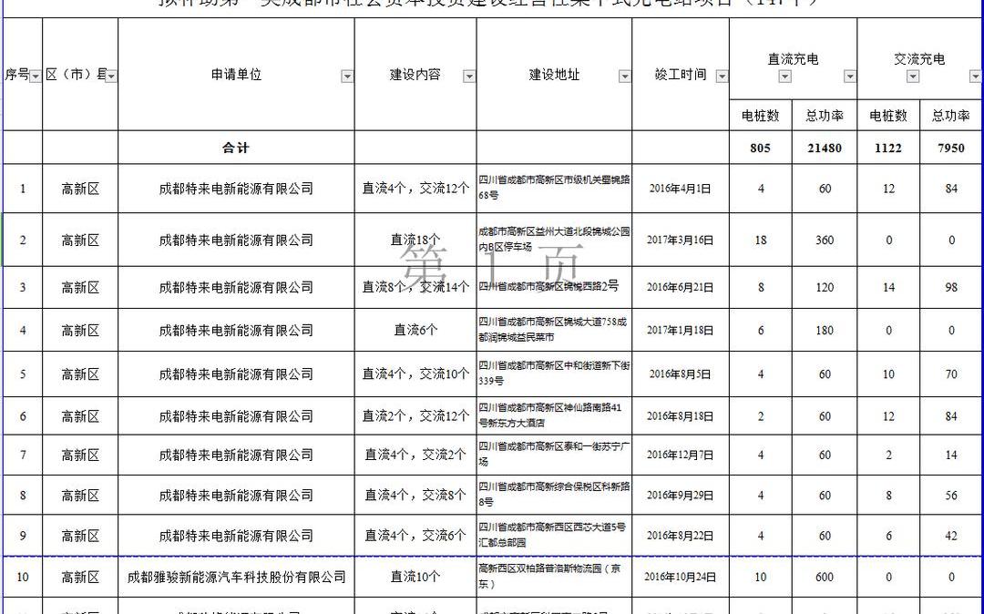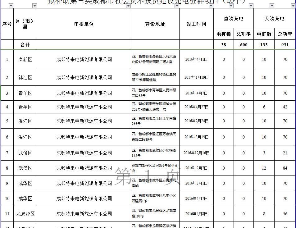 7月13日,成都市經濟和信息化委員會發布關于支持2017年成都市新能源汽車充換電設施市政補貼相關項目的公告,計劃對成都市社會資本投資的147個第一類集中充電站項目和20個第三類充電樁群項目進行補貼。