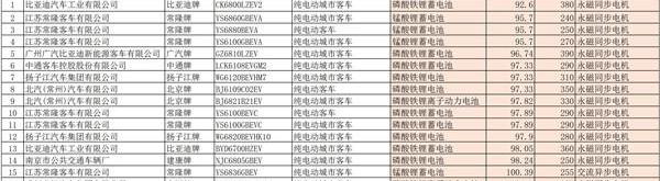 最后,從電機的整體配套情況來看,114款主要是永磁同步電機。第六批新能源汽車推薦目錄公交車部分: