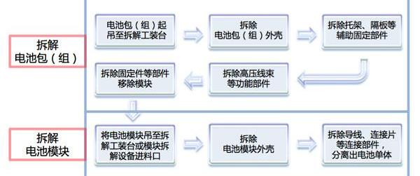 “《拆卸規范》主要針對動力電池單體,其拆卸需要經過預處理、包裝(組)拆卸和模塊拆卸三個步驟。”曹雄指出,預處理需要經過收集信息、處理冷卻劑、絕緣,拆除部分部件并輸入信息,以確保安全,并為后續處理提供經驗。