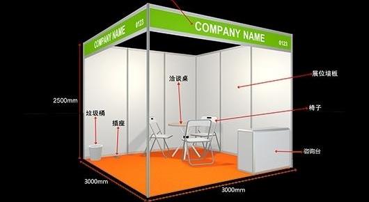 標準展位(包括:1張咨詢臺、1張圓桌、2把椅子、1個垃圾桶、2盞射燈、1個5A/220V單相英文插座。)