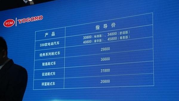 在發布會上,裕捷發布了330款裕捷電動車新車型,并公布了各車型的價格。裕捷330采用標準A00級客車的質量打造,被定義為小型時尚汽車。消費者瞄準了低速電動車的新升級群體,即注重時尚、智能和舒適的年輕城市上班族和退休人員。御街330標準版3.08萬元,舒適版3.48萬元、豪華版4.08萬元和尊貴版4.58萬元。