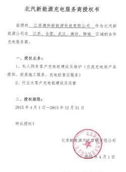 有限公司贏得了北汽新能源華東、華中地區戰略合作伙伴,并獲得了私人購車人充電樁建設和維護授權(交流充電樁產品提供、安裝施工服務、充電樁售后服務),以及為行業主要客戶建設和運營充電樁的授權。它為消費者提供了一個快速、方便、有保障的消費渠道,讓消費者可以放心充電。