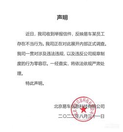 易車在其官方微博賬號上發布了一份關于一名員工被舉報的“聲明”。易車在聲明中指出,它正在對一封反映易車某員工不當行為的舉報信進行內部正式調查。易車還表示,公司對違反法律法規和公司規章制度的行為始終零容忍。一經查實,將依法依規嚴肅處理。聲明如下:
