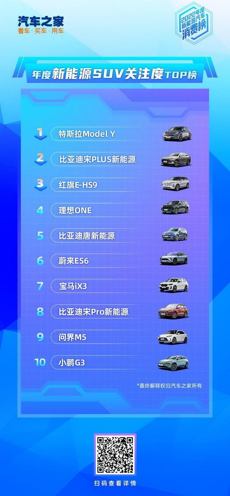 離子排行榜:“年度新能源汽車聲譽排行榜”包括年度新能源車聲譽排行榜和年度新能源SUV聲譽排行榜。基于用戶反饋,綜合考慮性價比、油耗等價格因素,以及動力、操控、舒適性、空間等體驗因素,以及外觀、內飾等滿意度因素,進行綜合計算,反映用戶對該車系各領域的滿意度評價。